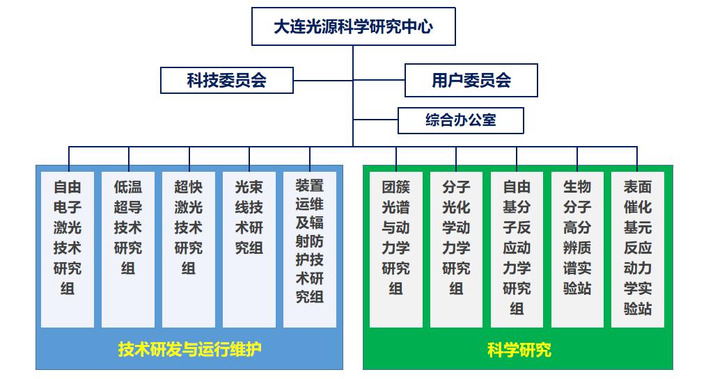 目前,大连光源科学研究室共包括技术研发与运行维护、科学研究两大版块,集成了光源技术研发、运行维护、科学研究等功能。
