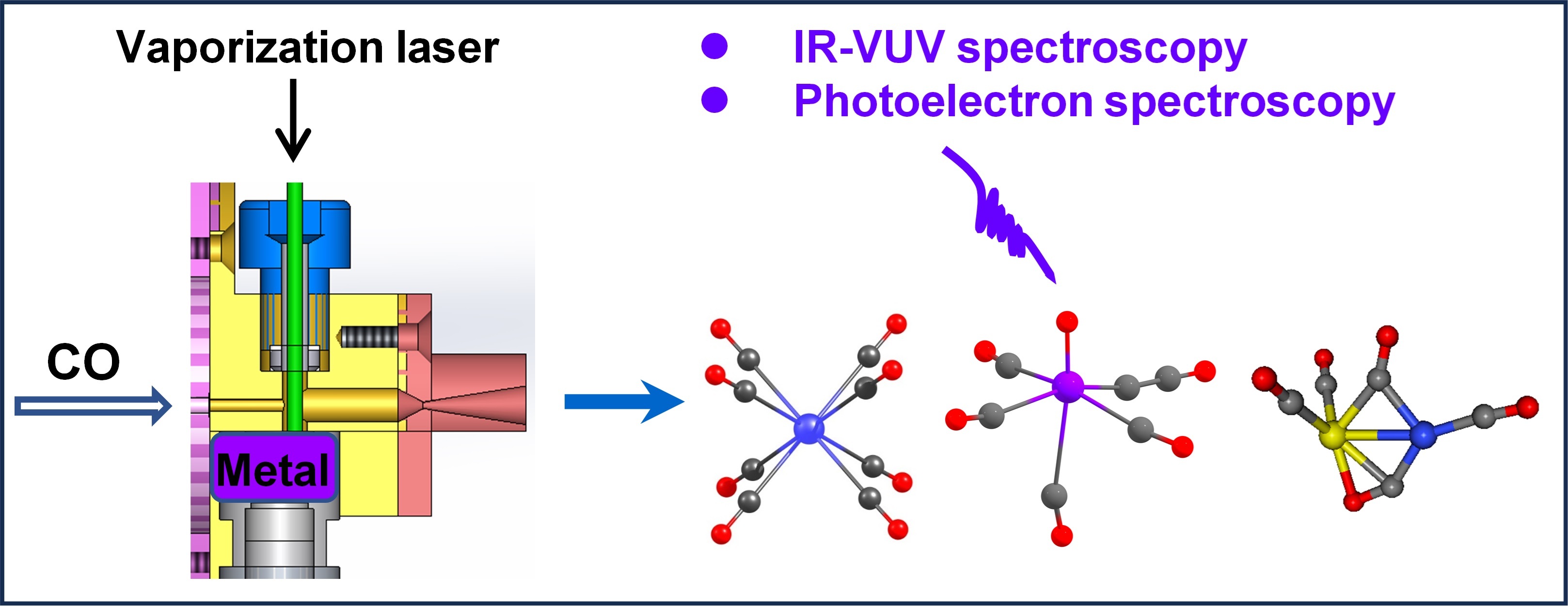 近日,大连化学物理研究所化学反应动力学全国重点实验室团簇光谱与动力学研究组(2506组)江凌研究员和谢华研究员团队发表了尺寸选择金属羰基化合物的综述文章,全面阐述了金属羰基化合物在光谱领域的研究进展,重点介绍了江凌团队自主研制的实验装置发现的新化合物和反应机理,并系统性分析讨论了该领域当前面临的机遇与挑战。