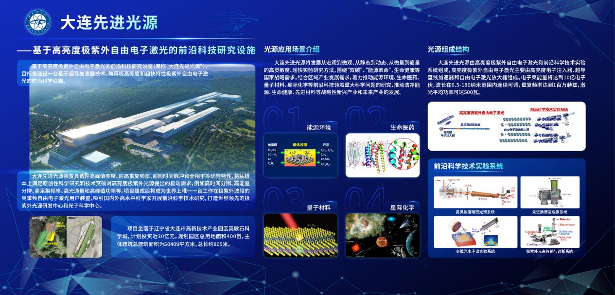 该项目全称为“基于高亮度极紫外自由电子激光的前沿科技研究设施”,简称“大连先进光源”。项目建设目标是发展一台基于超导加速器技术、兼具极高亮度和超快特性极紫外自由电子激光的前沿科学设施,并且发展从宏观到微观、从静态到动态、从微量到痕量的高灵敏度、超快实验研究方法,来推动能源环境、量子材料、生物分子、极紫外光刻等前沿科技领域重大科学问题的研究,推动能源环境、先进材料、生命健康、集成电路等战略性新兴产业和未来产业的发展。该项目是推动国家级实验室、辽宁实验室和沈大区域性科创中心建设的重要支撑,是大连英歌石科学城建设的核心工程,也是振兴东北区域发展的重要引擎,将填补辽宁省内至今尚无重大科技基础设施的空白,在科技创新和区域发展中都具有非常重要的意义。